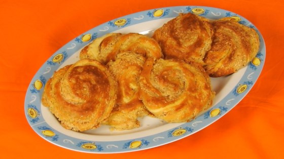 Roll out 1 piece of dough into a 6-inch disk. Place 2 tablespoons of the filling in the middle, gather up the edges in the center, and pinch to seal. Press down to flatten; roll back out into a 6-inch disk. Roll disk into a log about 12 inches long. Cut in half and stretch each piece out to make it a little longer. Roll in both ends towards the center, creating an 'S' shape. Fold 1 spiral over the other and flatten with your palm. Roll out slightly; transfer to the prepared baking sheet.
