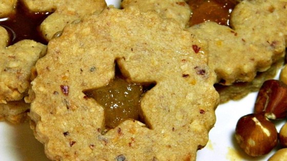 Using a 1-inch round cookie butter, cut out the center of 6 cookies and remove. Bake about 20 minutes or until golden. Cool on rack for 5 minutes.