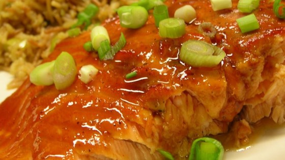 Season the salmon with a light sprinkling of salt and pepper. Place the fillets onto the smoking cedar planks, close the lid of the grill, and cook for 10 minutes. Spoon a small amount of the sauce over the salmon fillets, and continue cooking until the fish turns opaque in the center, about 5 minutes more. Serve with the remaining sauce.